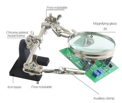Βάση στήριξης πλακετών με μεγεθυντικό φακό, ο οποίος την καθιστά ιδανική για μικρο-συγκολήσεις.