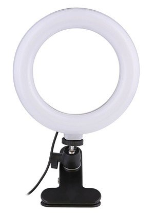 Φωτιστικό δαχτυλίδι LED με διάμετρο 16cm, ιδανικό για λήψη φωτογραφιών ή βίντεο, μακιγιάζ και live μεταδόσεις. Διαθέτει λαμπτήρα που προσφέρει τη δυνατότητα αλλαγής χρώματος λευκού φωτός αλλά και την μείωση/αύξηση της φωτεινότητας.