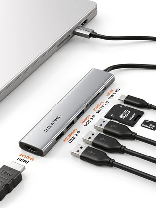 CABLETIME docking station CT-HBP2-AG7, 7 θυρών, USB-C, 4K, 100W, γκρι