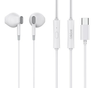 CELEBRAT earphones με μικρόφωνο D12, USB-C σύνδεση, Φ14.2mm, 1.2m, λευκά