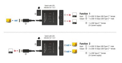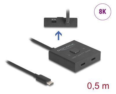DELOCK USB-C switch 18911, 2 σε 1 bidirectional, 10Gbps, 8K, 100W, μαύρο