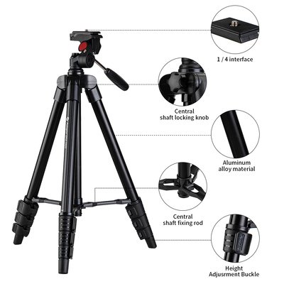 Διαθέτει πτυσσόμενο σχεδιασμό με το μέγιστο ύψος του να φτάνει τα 121cm και είναι κατάλληλο για φωτογραφικό εξοπλισμό με μέγιστο βάρος 2kg.