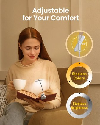 Ο εύκαμπτος βραχίονας σας επιτρέπει να ρυθμίζετε τη γωνία φωτισμού όπως επιθυμείτε, ενώ το πρακτικό κλιπ στερέωσης εξασφαλίζει σταθερό κράτημα στο βιβλίο.