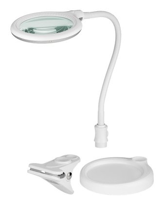 Μεγεθυντικός φακός της Goobay με μεγάλη διάμετρο 10cm και δακτύλιο με 30 SMD LED υψηλής απόδοσης. Διαθέτει 3 διόπτρες με μεγέθυνση 1.75x και εύκαμπτο βραχίωνα που παρέχει ευελιξία και προσφέρει μεγάλη ακτίνα εργασίας. Διαθέτει κλιπ συγκράτησης, εξαιρετικής σταθερότητας για τοποθέτηση σε πάγκο εργασίας ή γραφείο αλλά και αντιολισθητική βάση για μέγιστη ευελιξία.