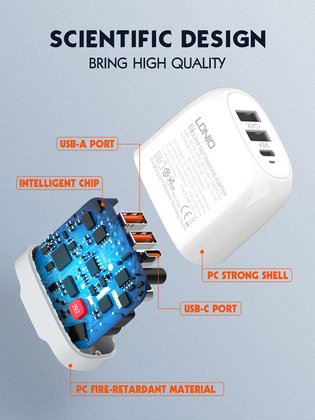 Υψηλής απόδοσης USB φορτιστής τοίχου της LDNIO, κατασκευασμένος από ανθεκτικό υλικό και συμβατός με όλες τις συσκευές που φορτίζουν μέσω USB θύρας.
