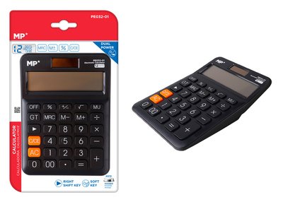 MP αριθμομηχανή PE032-01, ηλιακό & μπαταρίες, 12 ψηφία, μαύρη