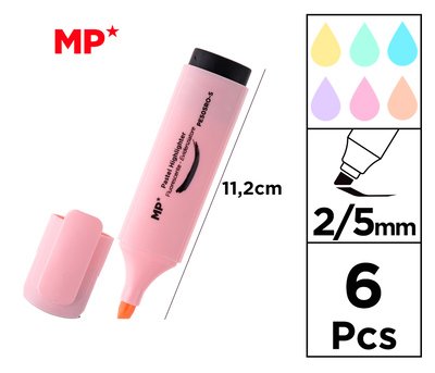 MP σετ μαρκαδόροι υπογράμμισης PE505, πάχος μύτης 2-5mm, διάφορα χρώματα, 6τμχ