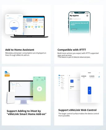 Συνδέεται μέσω WiFi και της εφαρμογής eWeLink με το smartphone σας, επιτρέποντας σας να παρακολουθείτε το ρεύμα που καταναλώνουν οι συσκευές σας και να υπολογίσετε το κόστος λειτουργίας τους. Μπορείτε να παρακολουθείτε την ακριβή τάση και ισχύ σε πραγματικό χρόνο, να προγραμματίσετε την αυτόματη ενεργοποίηση και απενεργοποίηση των συσκευών σας σε καθορισμένο χρόνο, άλλα και να ορίσετε τιμές κατώτατου ορίου για το ρεύμα, την τάση και την ισχύ ώστε να προστατεύσετε τις συσκευές σας από την υπερφόρτωση.