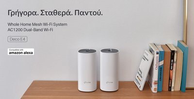 -Το Deco E4 παρέχει γρήγορες και σταθερές συνδέσεις με ταχύτητες έως 1167 Mbps και συνεργάζεται με τον κύριο πάροχο υπηρεσιών διαδικτύου (ISP) και μόντεμ.