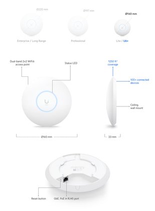 Το access point U6+ της Ubiquiti με τεχνολογία Wi-Fi 6, σας προσφέρει γρήγορες ταχύτητες ασύρματου δικτύου που φτάνουν έως και 3000Mbps σε διπλή ζώνη, 2.4GHz και 5GHz.
