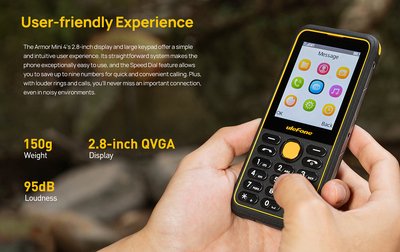 ULEFONE κινητό τηλέφωνο Armor Mini 4, IP68, 2.8″, dual SIM, 4G, μαύρο