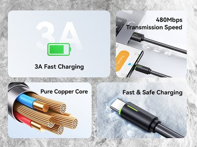 Καλώδιο φόρτισης και μεταφοράς δεδομένων USB-C σε USB της Usams. Υποστηρίζει φόρτιση με απόδοση έως 3A και μεταφορά δεδομένων με ταχύτητα έως 480Mbps.