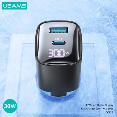 USAMS φορτιστής τοίχου US-CC229, USB & USB-C, 30W, GaN, μαύροςUSAMS φορτιστής τοίχου US-CC229, USB & USB-C, 30W, GaN, μαύρος
