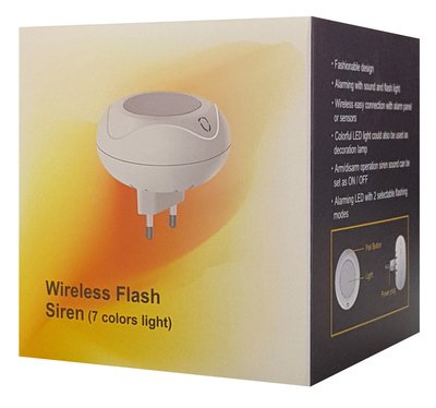 Ασύρματη σειρήνα εσωτερικού χώρου της Wolf Guard με ηχητικό και οπτικό συναγερμό LED φωτός 7 διαφορετικών χρωμάτων και 2 διαφορετικών λειτουργιών. Χάρη στη μοντέρνα σχεδιάσει του και την μεγάλη γκάμα χρωμάτων LED, μπορεί να χρησιμοποιηθεί ως φως διακόσμησης.